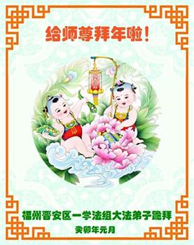 弟子一家人给师父拜年! 福州市一大法弟子携家人敬贺 福建省福州市母女三名大法弟子恭祝师父过年好!