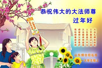 山东省烟台招远市一高校大学生恭祝伟大的大法师父过年好!