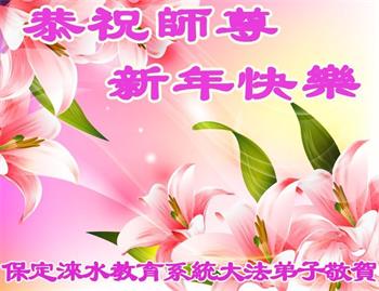 师尊您好! 我们是河北省涞水县的教师和学生,二十多年来,沐浴在师尊的佛恩浩荡中,无比的荣耀和幸福!面对中共非法劳教、判刑、开除学籍等各种威胁,我们坚修大法不动摇,智慧的做好三件事。请师尊放心,我们一定倍加努力,紧跟正法進程,跟师尊回家。 保定市涞水县师生大法弟子叩拜 中国大陆教育界大法弟子及新学员恭祝师尊新年快乐!