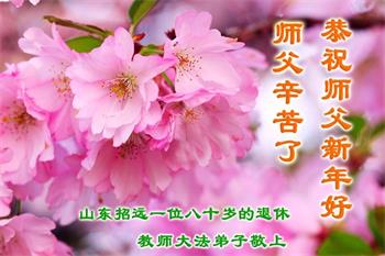 癸卯新年即将来临,在这幸福的时刻,大法弟子以真诚的心给慈悲伟大的师尊拜年!恭祝师尊新年好!师尊新年快乐! 癸卯年伊始,就是弟子沐浴浩荡洪恩第三十年,弟子真诚感恩师尊的慈悲保护和救度!北京市海淀区学院路街道八十一岁大法弟子叩拜师尊! 横心修炼兑誓言,三十年来遂心愿。 遇事内找不争辩,改变本体不懒惰。 转变观念对己严,八十一岁再精進。 感恩师尊心如初,紧跟师尊返家园。 山东省济南大学老师大法弟子恭祝师父过年好!