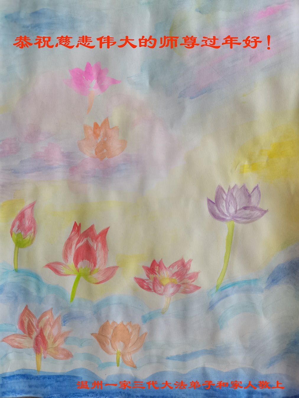 浙江省温州市一家三代大法弟子和家人恭祝慈悲伟大的师尊过年好!