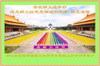 浙江杭州一大法弟子恭祝伟大的师尊新年快乐!