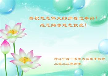 敬祝伟大慈悲的师尊新年快乐! 浙江省温州市—学法小组敬上 二零二三年一月十五日 浙江省宁波市大法弟子恭祝师尊过年好!