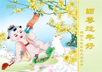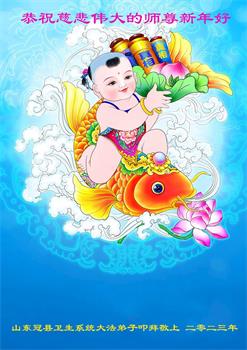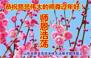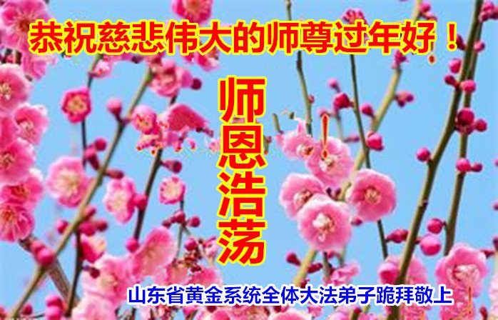 师父您好!叩拜师父!得法后,我们深知师父的洪大慈悲及法轮大法的神奇。请师父放心,弟子一定实修大法到底。 山东省黄金系统全体大法弟子恭祝慈悲伟大的师尊过年好!