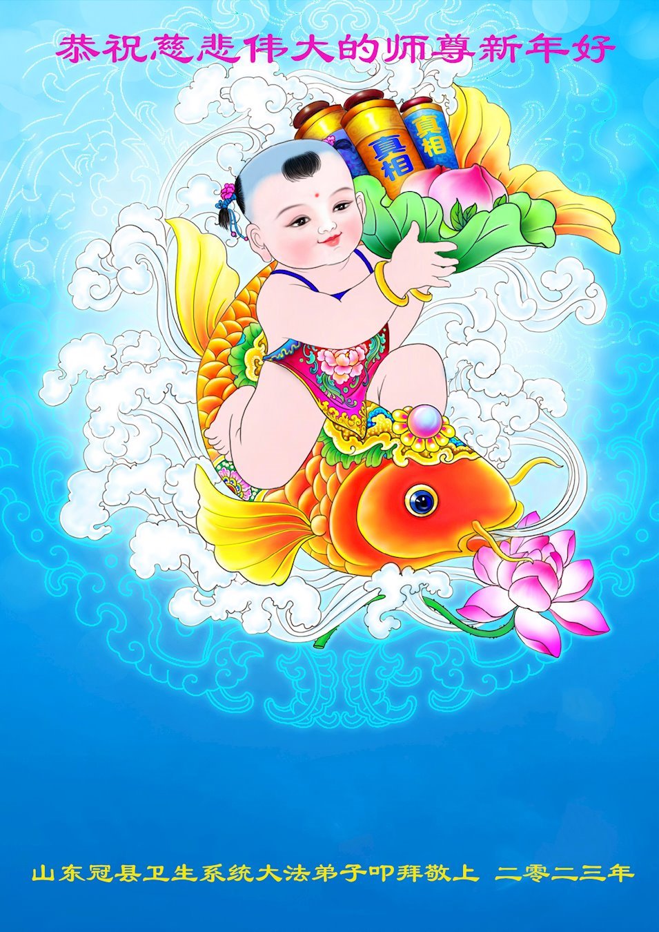 恭祝伟大的师尊新年快乐!大陆大法弟子们盼您早日回来。 弟子要做好三件事,圆满随师还! 山东省聊城市冠县卫生系统大法弟子恭祝慈悲伟大的师尊新年好!新年快乐!