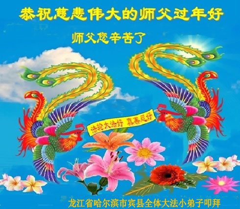黑龙江省哈尔滨市宾县全体大法小弟子恭祝慈悲伟大师父过年好!