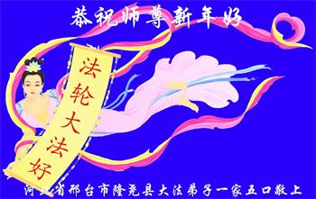 河北省邢台市隆尧县大法弟子一家五口人恭祝师尊新年好!