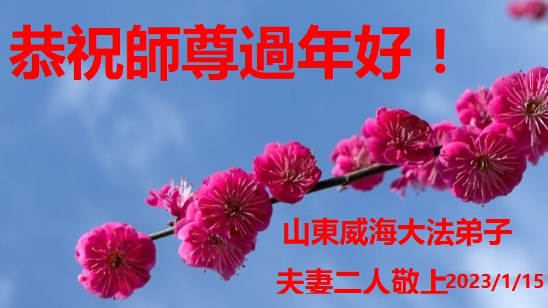 【明慧网二零二三年一月二十二日】 山东威海大法弟子夫妻二人恭祝师尊过年好!