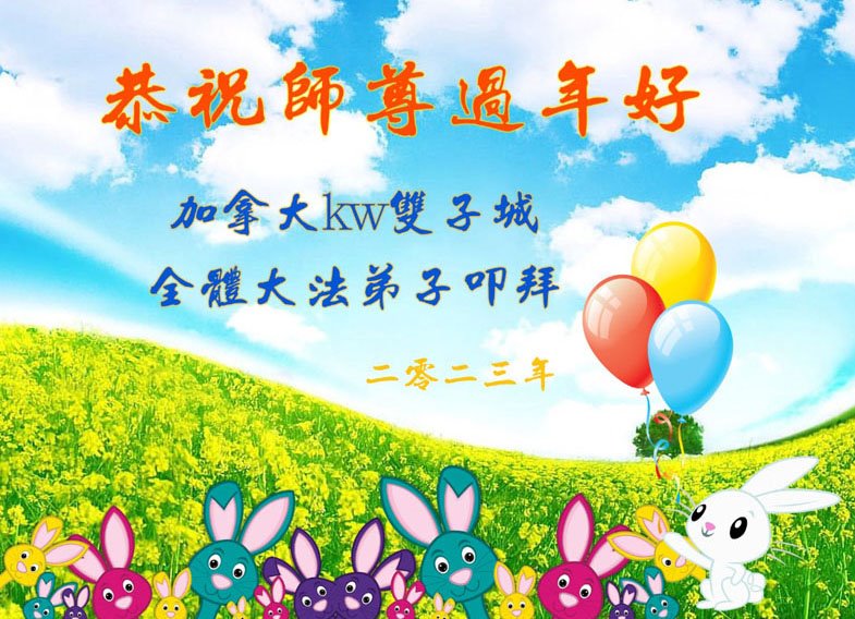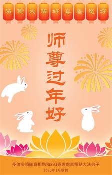 师父您辛苦了!弟子一定不辜负师父的慈悲救度,完成历史使命,圆满回家园。 加拿大多伦多大法弟子大陆大法弟子共祝师尊兔年好!