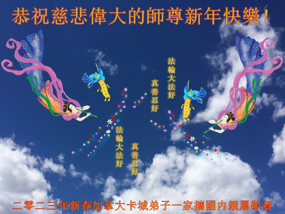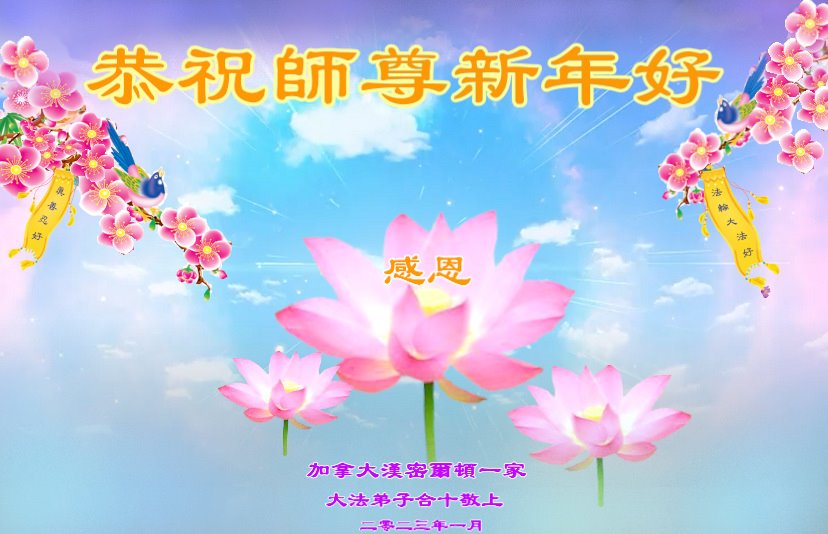 恭祝师父新年好! 加拿大多伦多大法弟子一家四口 敬贺 二零二三年一月二十二日 加拿大卡尔加里大法弟子恭祝慈悲伟大的师尊过年好!