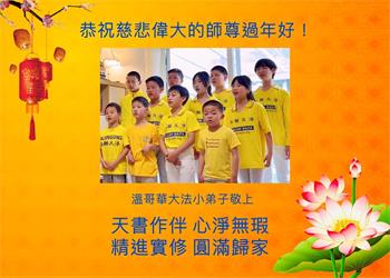 加拿大温哥华一青年及母亲大法弟子恭祝慈悲伟大的师尊过年好!