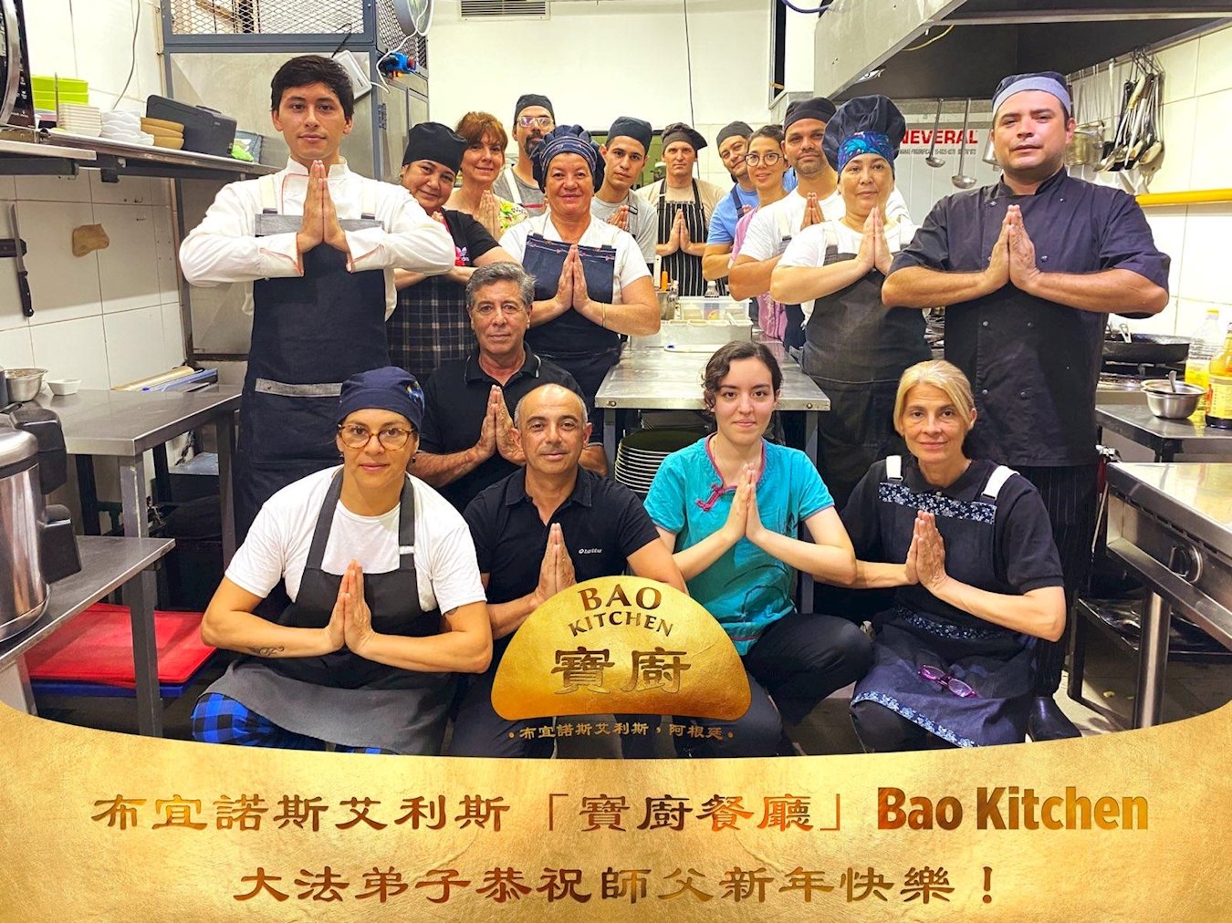 我们是布宜诺斯艾利斯“宝厨餐厅”(Bao Kitchen)的大法弟子。在此恭祝师父新年快乐!我们每天都用心向每一位来自阿根廷和多世界各地的客人讲清法轮大法和迫害真相,送给大家干净网页讯息卡片。同时我们向所有外国来的客人介绍神韵。有很多的人说,他们听到过神韵,也看过广告,可是没有想到买票,听我们的介绍,他们说回去一定要去看神韵!由于师父无量的慈悲,来自世界各地的客人越来越多,他们在阿根廷都了解了真相。 巴西圣保罗第二炼功点大法弟子恭祝慈悲伟大的师父过年好!