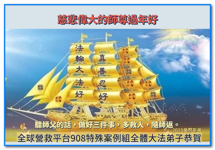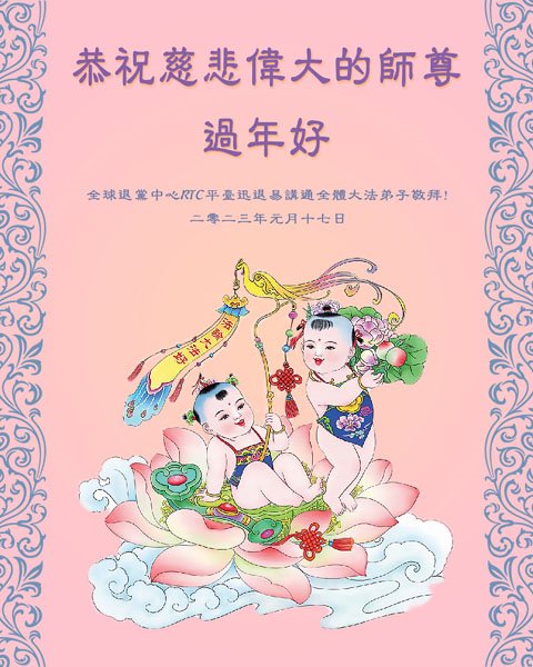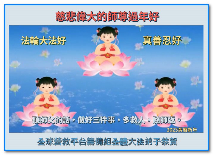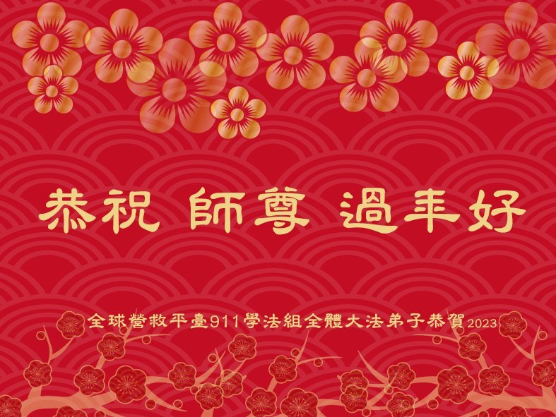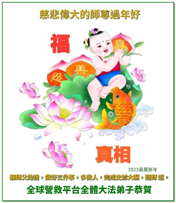 恭祝师尊中国新年快乐! 全球营救平台发正念组全体大法弟子恭贺 二零二三年元月 全球电话营救平台903大法弟子恭祝慈悲伟大的师尊过年好!