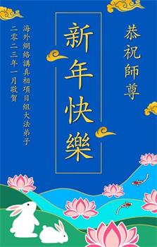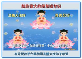 【明慧网二零二三年一月二十二日】 全球营救平台发正念组全体大法弟子恭祝师尊中国新年快乐!
