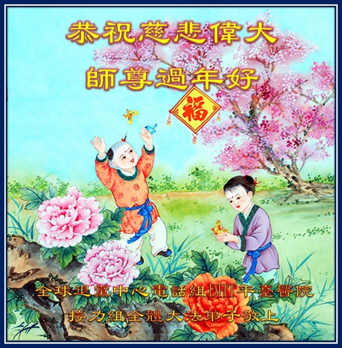 恭祝慈悲伟大师尊过年好! 全球.退:党!中心电话组DHT平台医院接力组全体大法弟子敬上 全球电话组DHT平台学法组全体大法弟子恭祝师尊过年好!