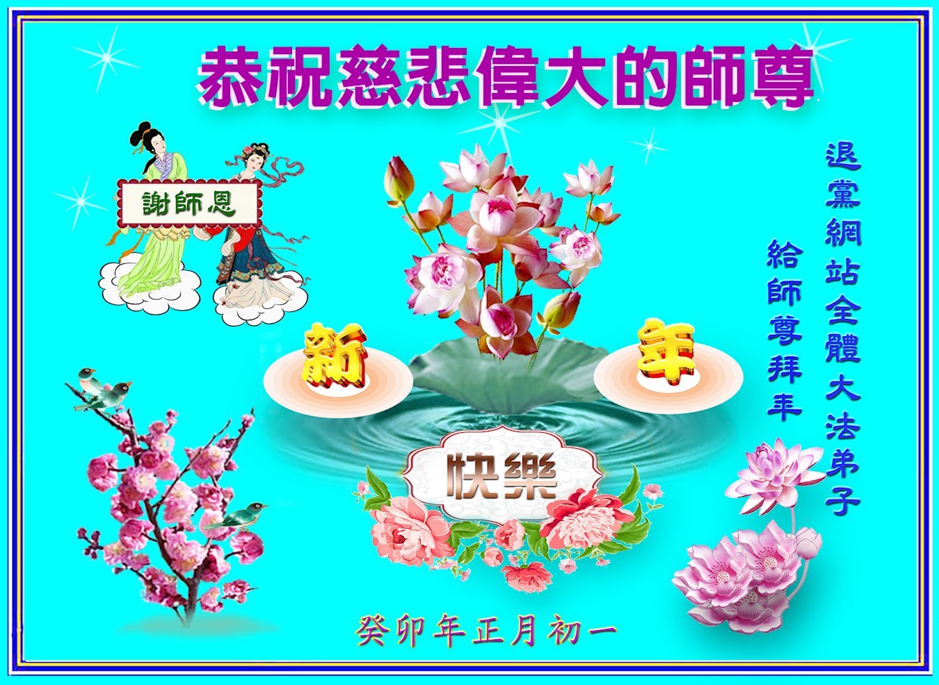 全球.退:党!中心电话组全体大法弟子恭祝慈悲伟大的师尊新年快乐!