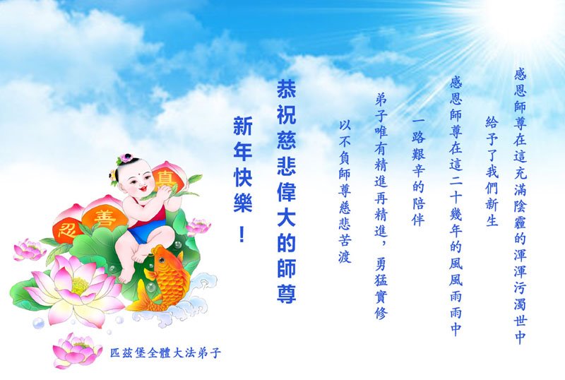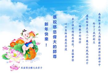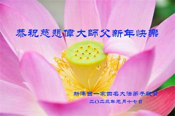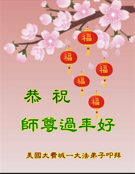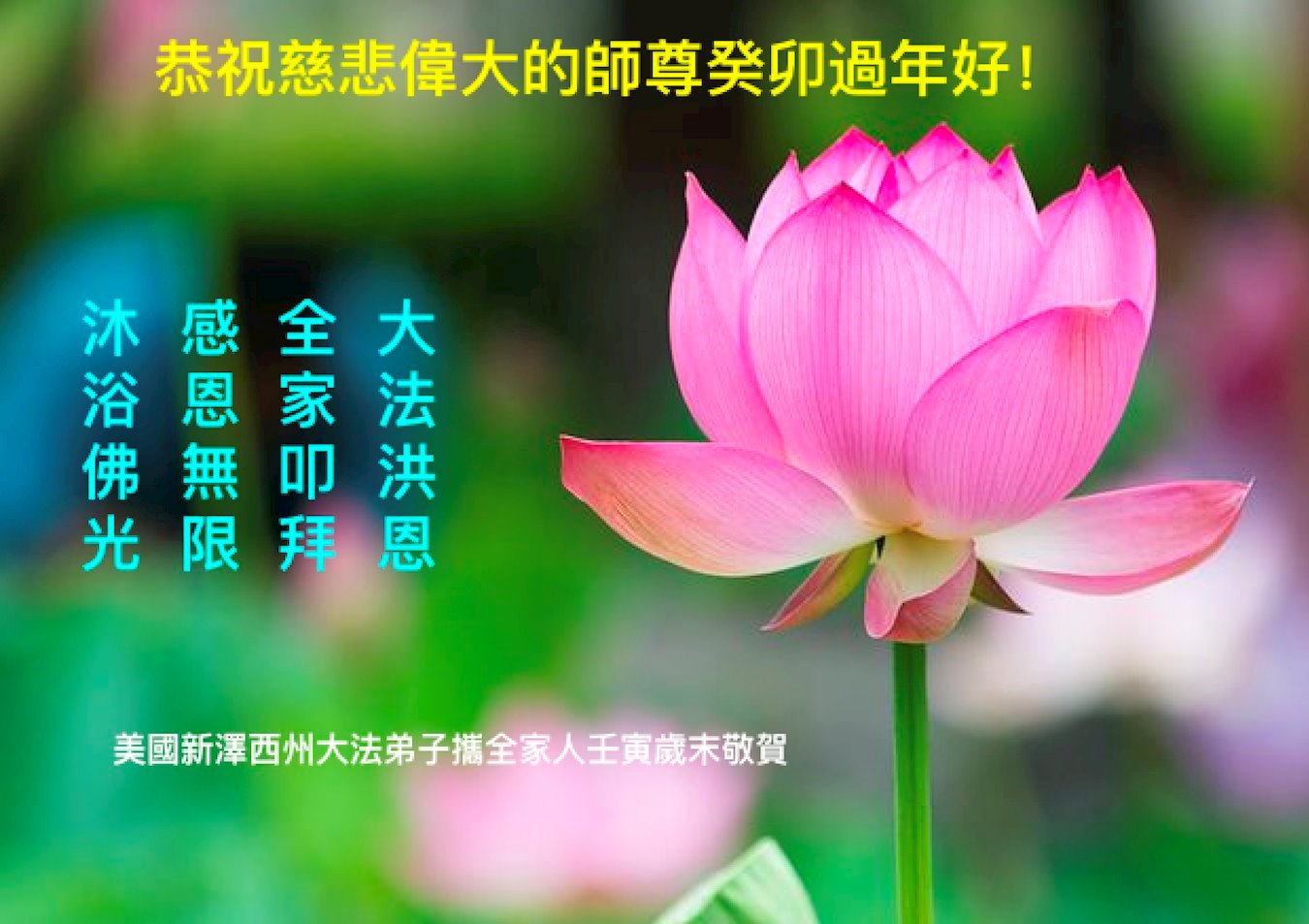 恭祝慈悲伟大的师尊过年好! 沐浴佛光 感恩无限 全家叩拜 大法洪恩 麻州一家大法弟子给师尊拜年,恭祝师尊新年好!
