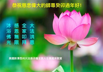 美国大费城一大法弟子叩拜 美国新泽西州一家四名大法弟子恭祝慈悲伟大的师父新年快乐!