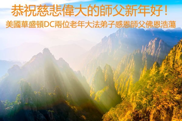 美国华盛顿DC两位老年大法弟子恭祝慈悲伟大的师父新年好!