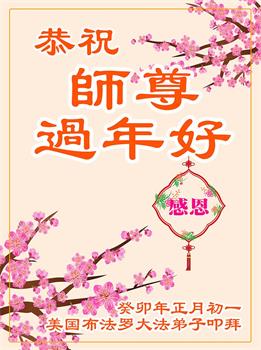 弟子一直感到师父就在我们身边,时时刻刻保护着弟子。师父您辛苦了! 师恩重 世事巨变在眼前 众生向善获新生 弟子感沛师恩重 修己救人又一年 美国湾区华人大法弟子敬拜 全球营救平台美国组全体大法弟子恭祝师尊中国新年快乐!