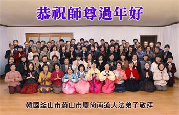 韩国釜山市蔚山市及庆尚南道大法弟子敬拜 韩国富川大法弟子恭祝师尊过年好!