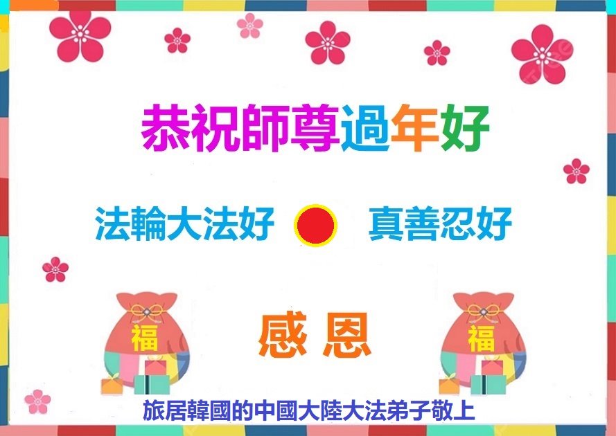 旅居韩国的中国大陆大法弟子恭祝慈悲伟大的师尊过年好!