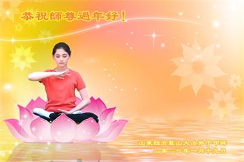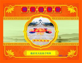 山东省临沂市临沭县大法弟子恭祝慈悲伟大的师尊新年快乐!师父辛苦了! 弟子们一定走好师父安排的路,珍惜时间,修己,救人,让师父欣慰! 山东临沂市蒙阴县一大法弟子恭祝师尊新年好!