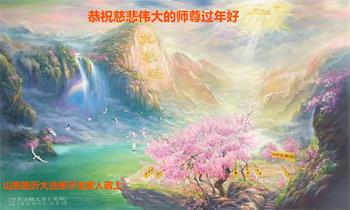 在新的一年中,弟子一定抓紧时间,讲清真相,多救人,兑现史前大愿,圆满随师还。 山东省临沂市临沭县全体大法弟子感恩师父的慈悲苦度,跪拜师尊,祝慈悲伟大的师尊新年好!