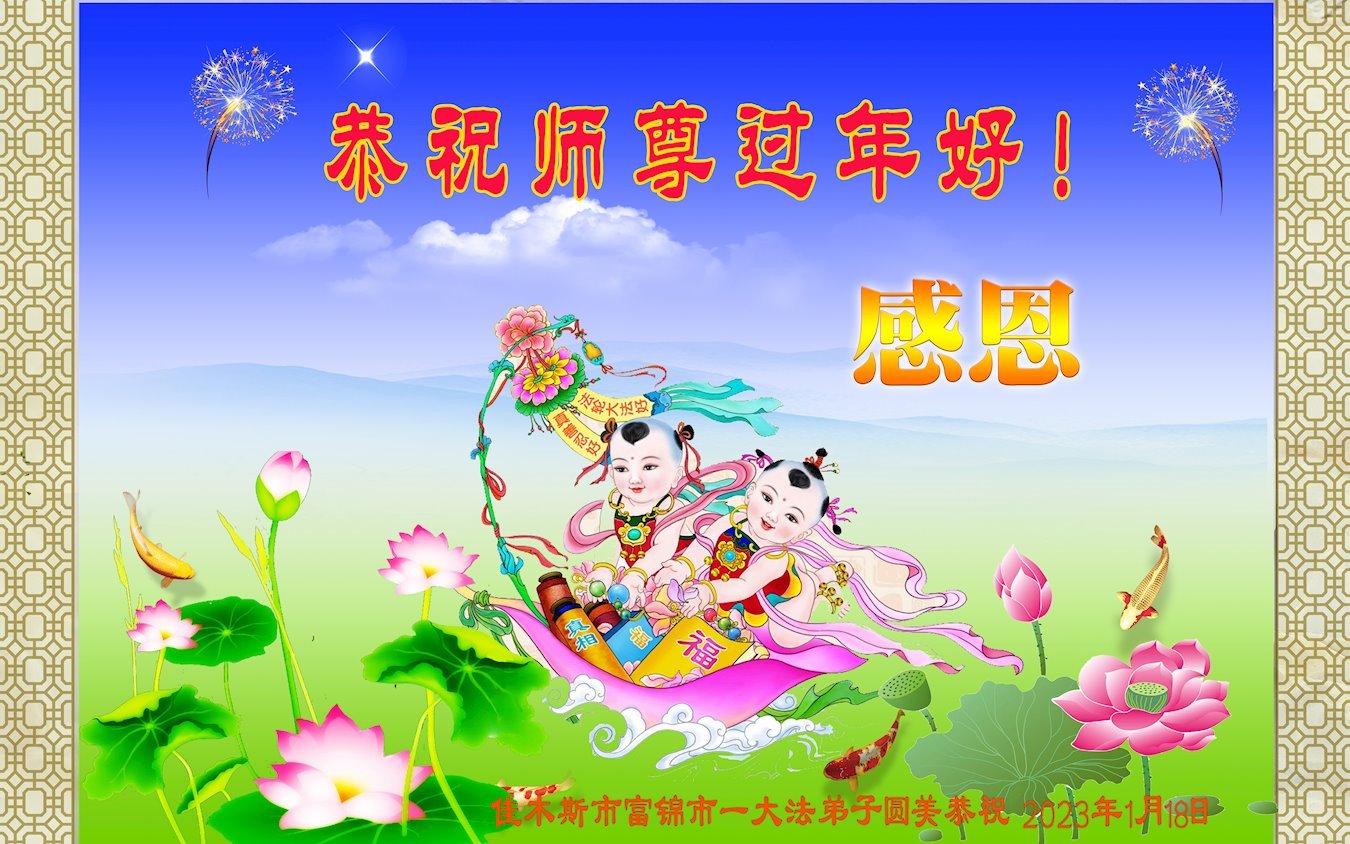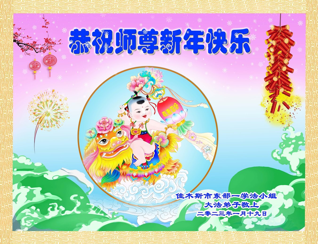 【明慧网二零二三年一月二十二日】 黑龙江省佳木斯市桦川县一家大法弟子恭祝慈悲伟大的师尊过年好!