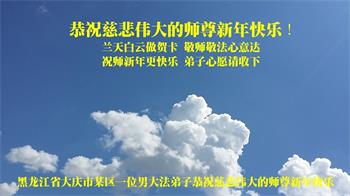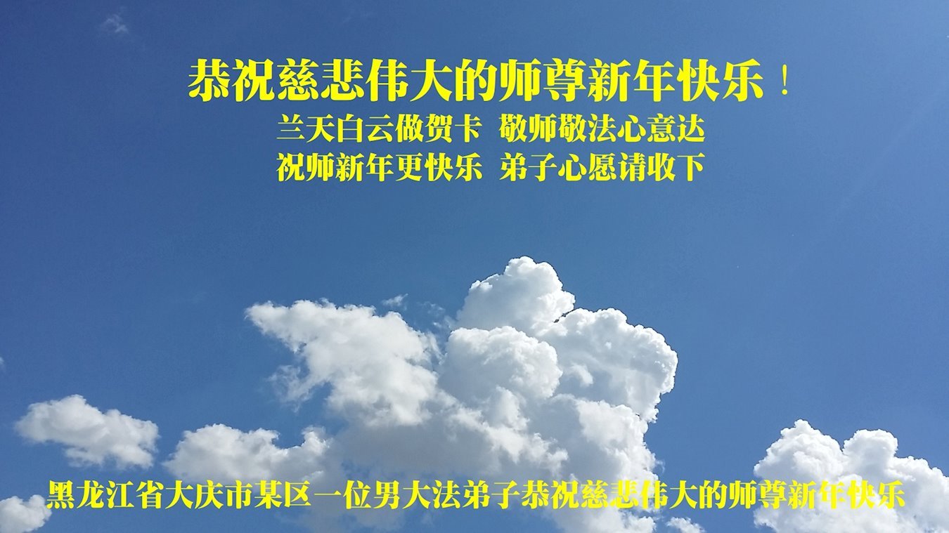 恭祝慈悲伟大的师尊新年快乐! 蓝天白云做 敬师敬法心意达 祝师新年更快乐弟子心愿请收下 黑龙江省大庆市一老年大法弟子和家人恭祝师尊新年快乐!