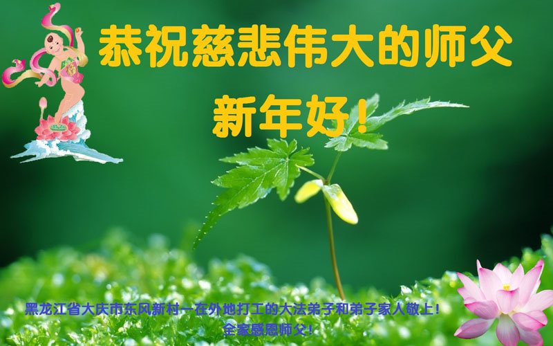 黑龙江省大庆市东风新村一在外地打工的大法弟子和家人恭祝慈悲伟大的师父新年好!全家感恩师父慈悲救度!