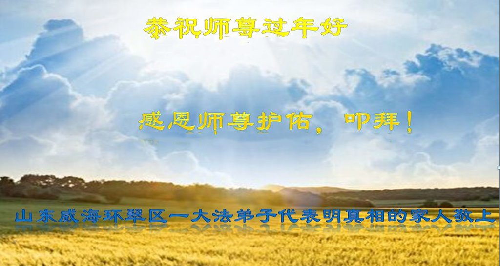 【明慧网二零二三年一月二十二日】 山东省威海市环翠区一大法弟子代表明真相的家人恭祝师尊过年好!感恩师尊慈悲的保护!