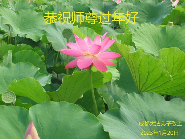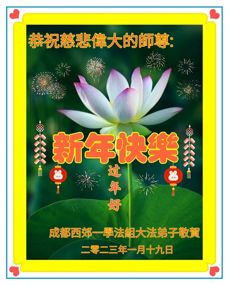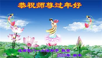 【明慧网二零二三年一月二十二日】 四川省成都西郊一学法组大法弟子恭祝慈悲伟大的师尊新年快乐!