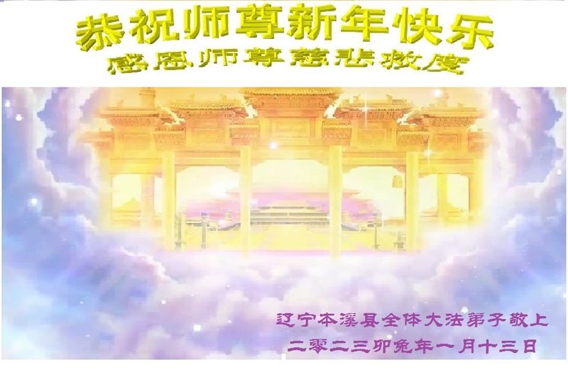感恩师父的慈悲救度和保护!弟子在讲真相救众生中兑现誓约,随师把家还。 辽宁本溪县全体大法弟子恭祝慈悲伟大师尊新年快乐!