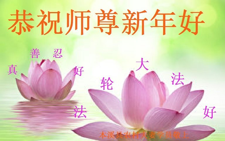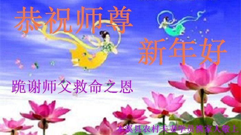 法轮大法好!真善忍好! 本溪县农村夫妻学员携家人敬上 辽宁本溪市一大法弟子恭祝师尊过年好!