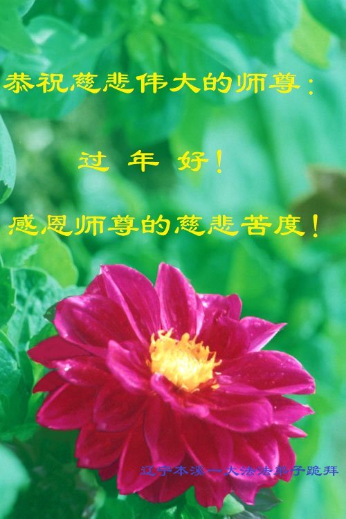 师尊您辛苦了!感恩师尊的慈悲看护。在新的一年里,弟子唯有精進,才能报答师尊的慈悲苦度。弟子叩拜师尊! 辽宁本溪县全体大法弟子恭祝慈悲伟大师尊新年快乐!