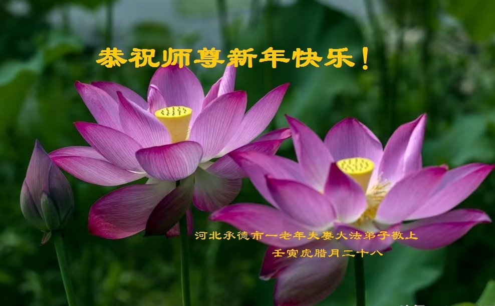 弟子勇猛精進。盼师父早日回来,跟师父回家。 河北成安大法弟子夫妻俩及全家恭祝师父新年快乐!