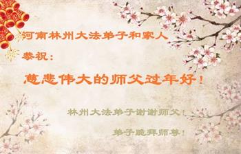 河南林州市大法弟子和家人恭祝慈悲伟大的师父过年好! 林州大法弟子谢谢师父!弟子跪拜师尊! 河南洛阳嵩县一大法弟子及全家恭祝慈悲伟大的师父过年好!师父您辛苦了!