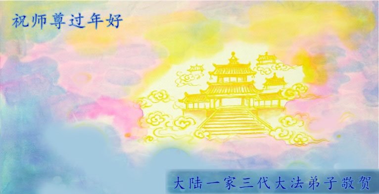 我们全家都相信法轮大法好、真善忍好,并在大法中受益,感谢慈悲师父的救度!在此遥祝慈悲伟大的师父新年快乐! 湖北省武汉大法弟子一家恭祝慈悲伟大的师尊过年好!感恩师父的慈悲救度!叩谢师恩!