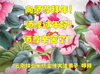 弟子们感恩师尊慈悲救度!坚定实修,牢记使命,兑现誓约,做好三件事,多救人,圆满跟师父回家。 云南省林业系统全体大法弟子向师尊拜年!恭祝师父过年好!