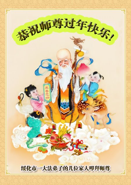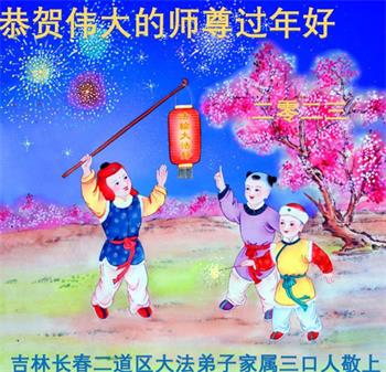 师父过年好!师父辛苦了!谢谢师父慈悲救度。双手合十 吉林长春二道区大法弟子家属三口人恭祝伟大的师尊过年好!
