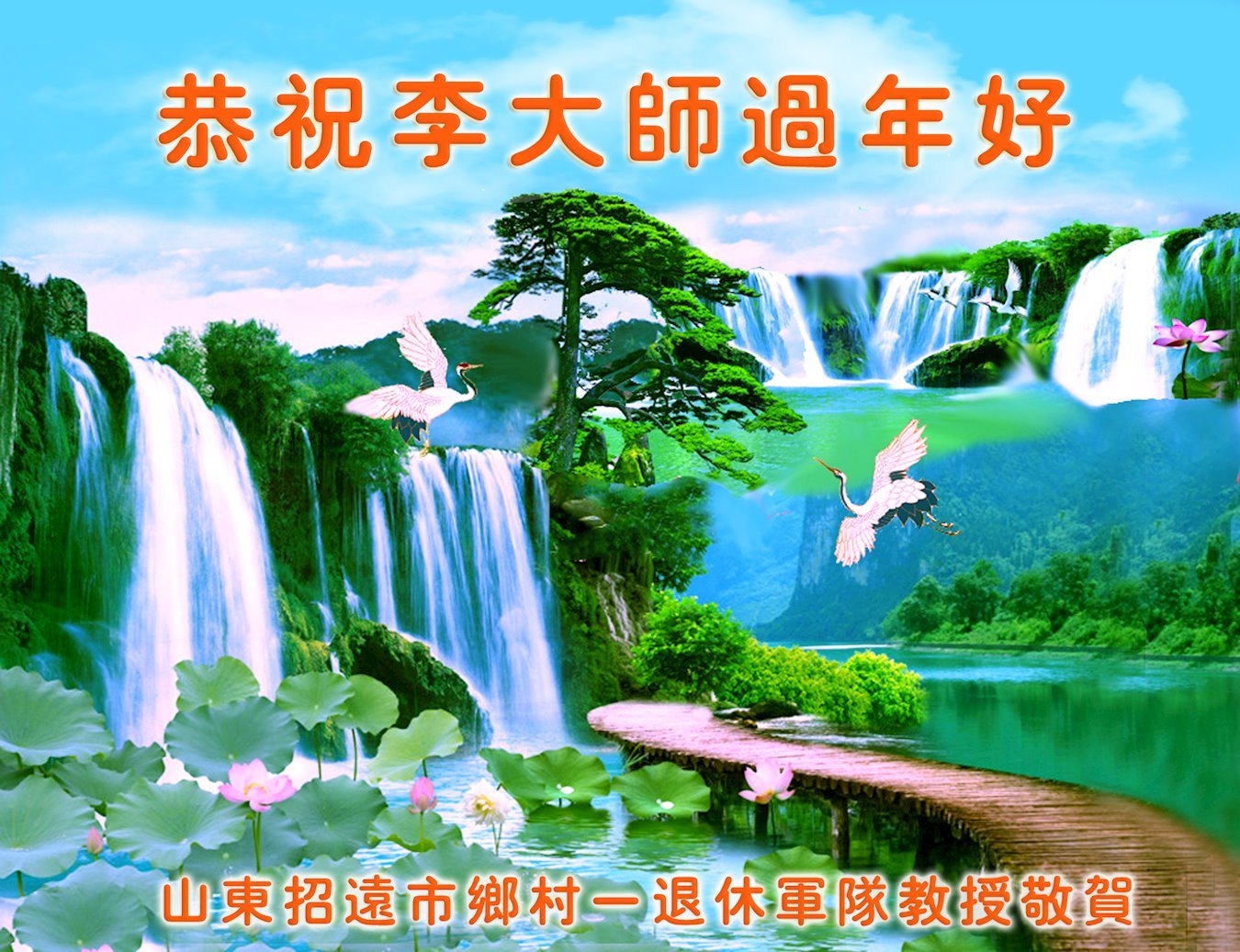 我母亲今年八十多岁了,自从修炼法轮功后,她身体无病一身轻,走路健步如飞。也有很多法轮功学员给我讲过真相,从她们身上我看到了大法的美好。我相信大法是正法。我愿用大法真相币(上书“法轮大法好 真善忍好”九字真言),有人不愿要真相币,我就告诉他们花真相币会得到福报的。我常年用它,不光买卖兴隆,还事事顺当。感恩李大师给我们的恩赐。 恭祝李大师新年快乐! 山东省招远市乡村一名96岁退休军队教授恭祝李大师过年好!