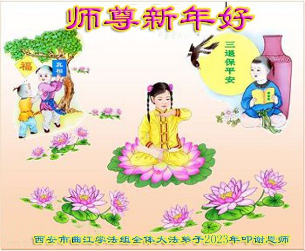 西安市全体大法弟子恭祝伟大的师尊新年好!师父新年快乐! 陕西省西安曲江学法组全体大法弟子恭祝师尊过年好!