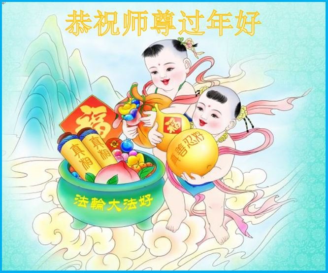 因为亲戚修炼17岁结缘大法,知道法好也知道有更深更高的内涵,但因为对修炼松懈而放低修炼的标准没有时时修心性而痛苦甚至麻木,我发自内心的向师尊保证今年我一定加强学法提高心性加强自己主意识,请师尊放心! 吉林省长春市二道区一夫妻大法弟子及家属给师尊拜年了!恭祝慈悲伟大的师尊新年快乐!师尊辛苦了!