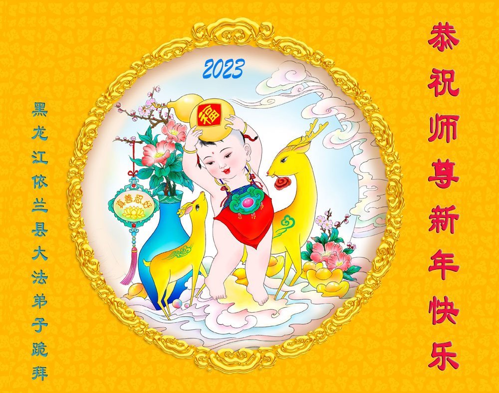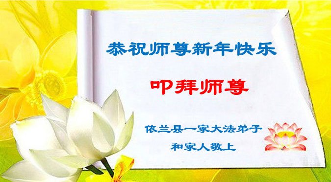 【明慧网二零二三年一月二十三日】 黑龙江省哈尔滨市依兰县一家大法弟子和家人恭祝师尊过年好!