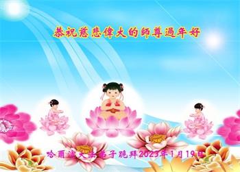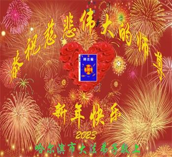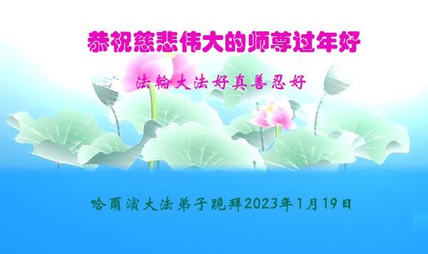 恭祝慈悲伟大的师尊新年好!师尊新年快乐! 师尊您辛苦了,感恩师尊慈悲苦度,感恩师尊洪恩浩荡。 哈尔滨市依兰县一名大法弟子 2023年1月20 黑龙江省哈尔滨教育系统大法弟子恭祝师尊过年好!