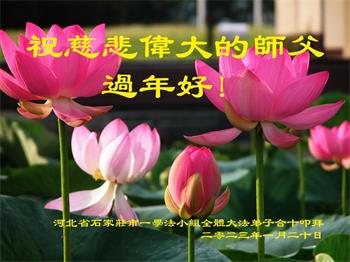 感恩师尊慈悲救度! 弟子唯有精進实修以报师恩。 河北省石家庄市两名大法弟子叩拜 二零二三年一月十九日 河北省石家庄大法弟子的家人恭祝伟大的师父新年快乐!