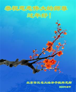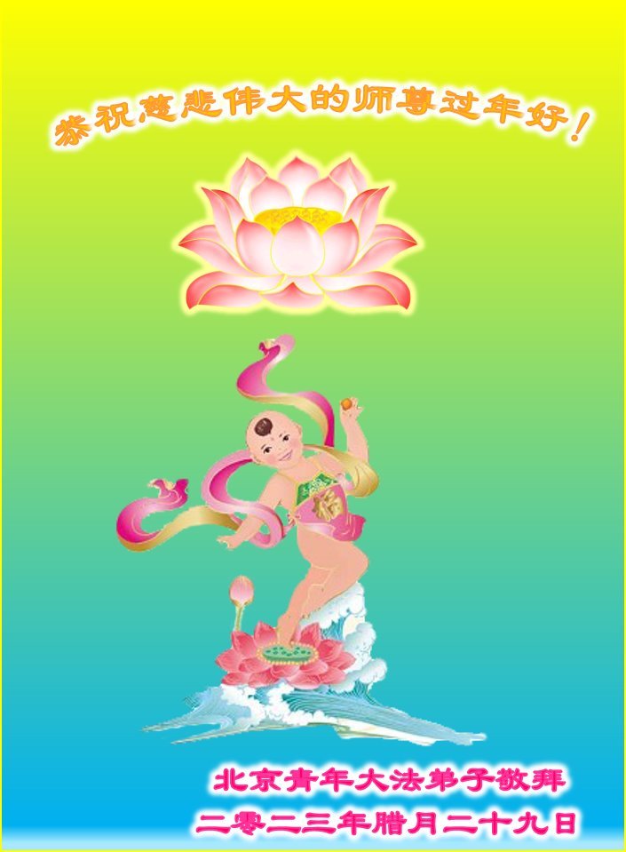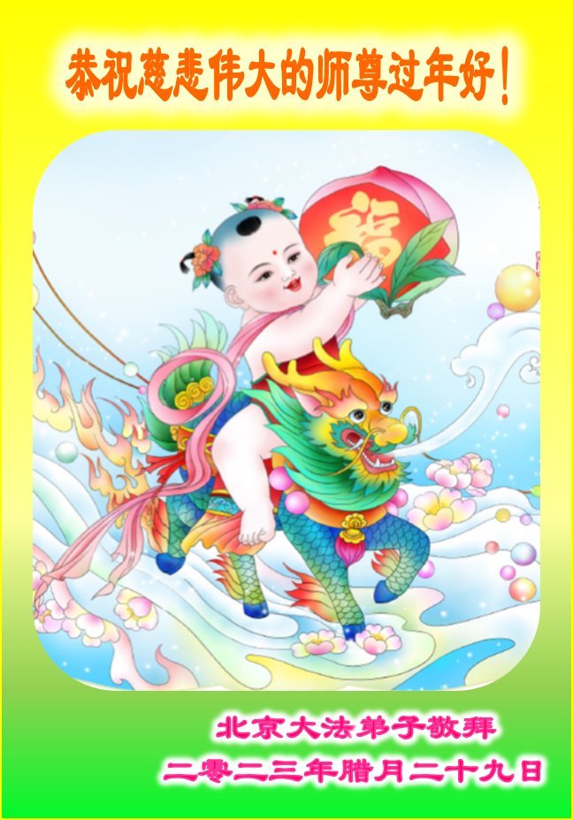【明慧网二零二三年一月二十三日】 北京丰台南苑干休所一大法弟子及全家恭祝慈悲伟大的师尊新年快乐!