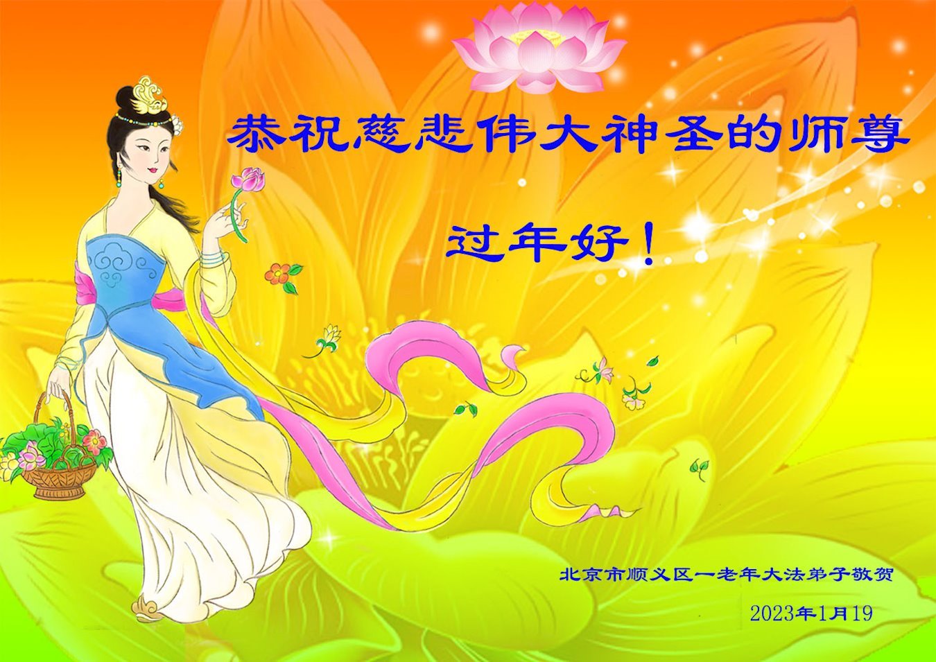 法轮大法好,真善忍好! 感谢师父慈悲救度之恩! 2023年1月20日 北京顺义一老年大法弟子恭祝慈悲伟大的师父过年好!