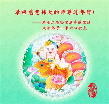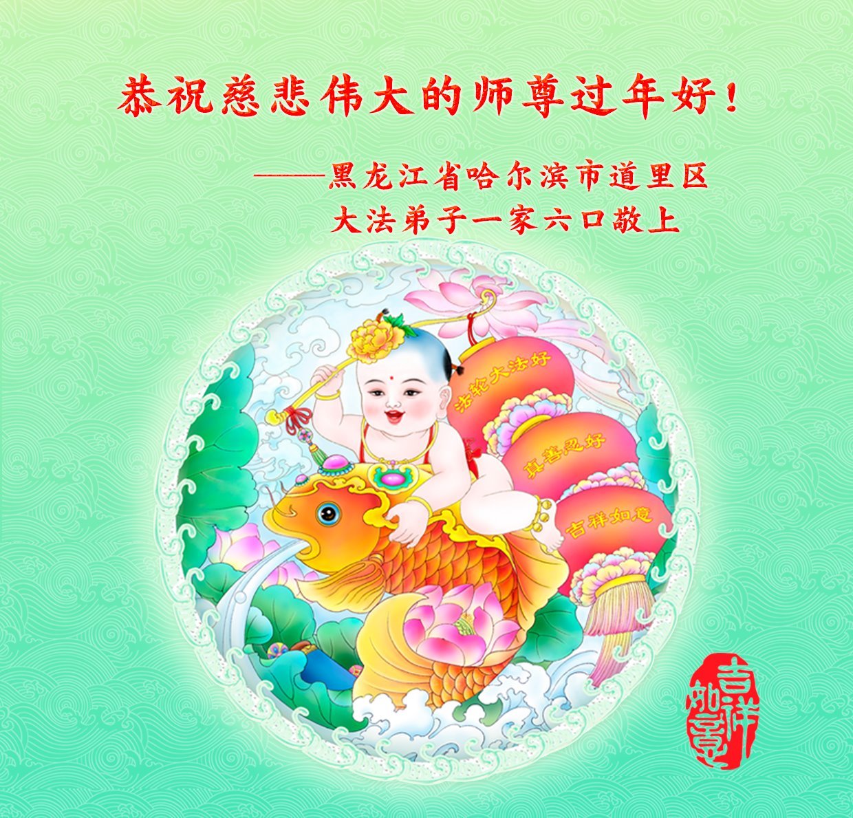 黑龙江省哈尔滨市道里区大法弟子一家六口恭祝师尊过年好!